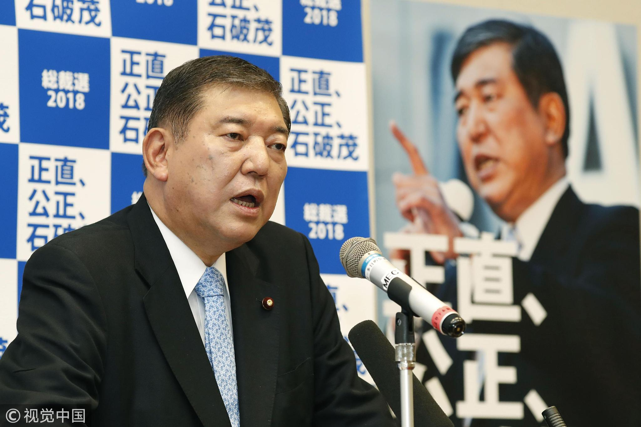 Former Japanese Defense Minister Shigeru Ishiba declares his candidacy for the forthcoming ruling Liberal Democratic Party presidential election during a press conference in Tokyo on August 10, 2018. /VCG Photo.