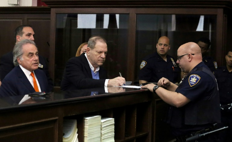 Disgraced Hollywood mogul Harvey Weinstein (C), at his arraignment in New York on rape and sex crimes charges, May 25, 2018. /AFP Photo