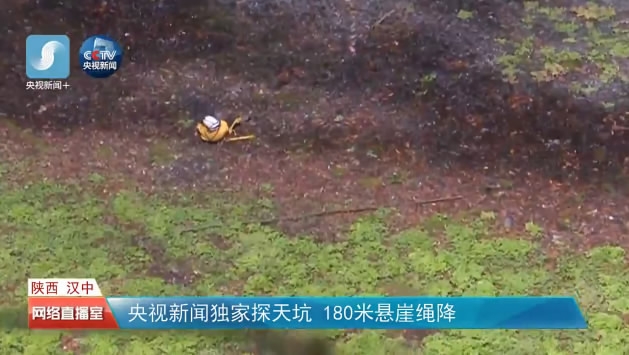 The scientist plunging into the “Tianxuan” sinkhole with an around-180-meter rope /CCTV Photo