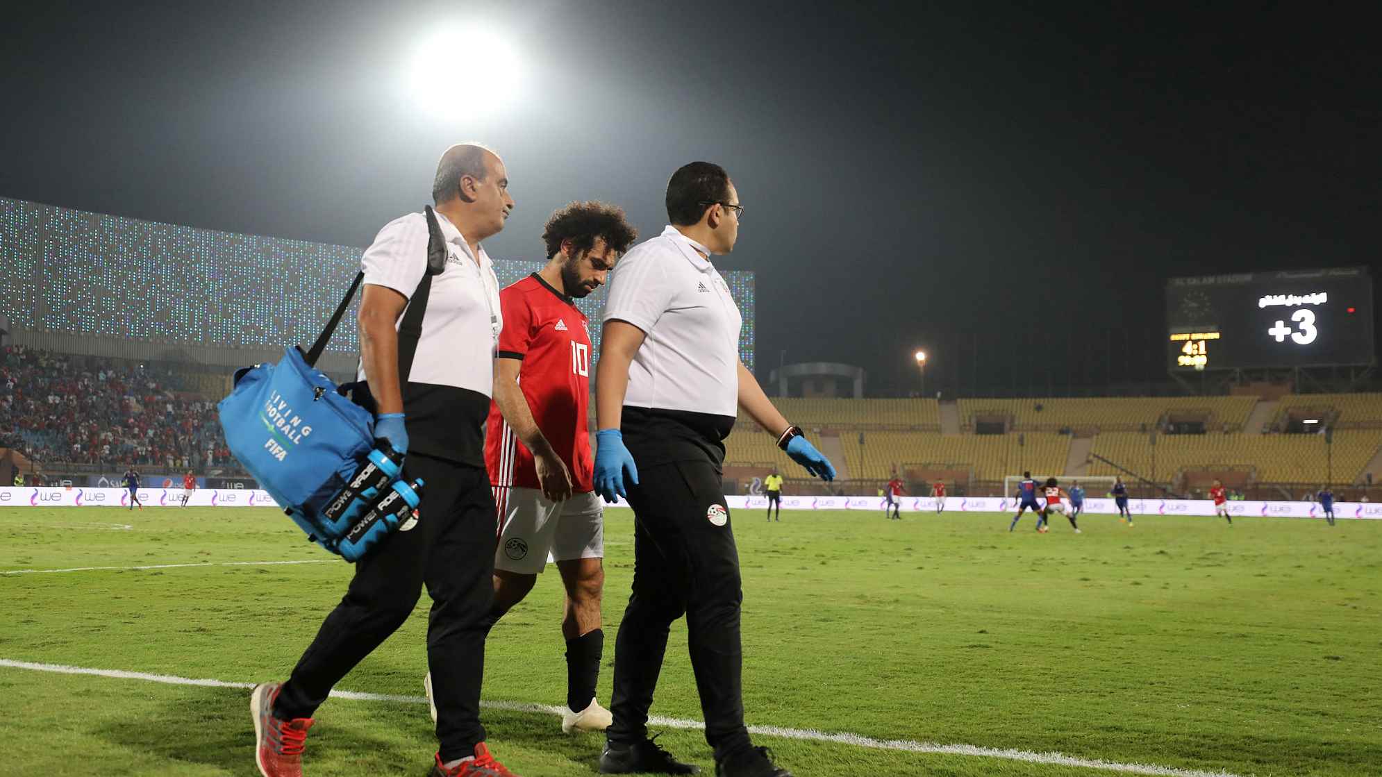 Mohamed Salah superbly curled a corner into the net in Egypt's 4-1 home win over Eswatini (formerly Swaziland) in Cairo but the Liverpool forward later limped off with a muscle strain and is doubtful for the return match on Tuesday.