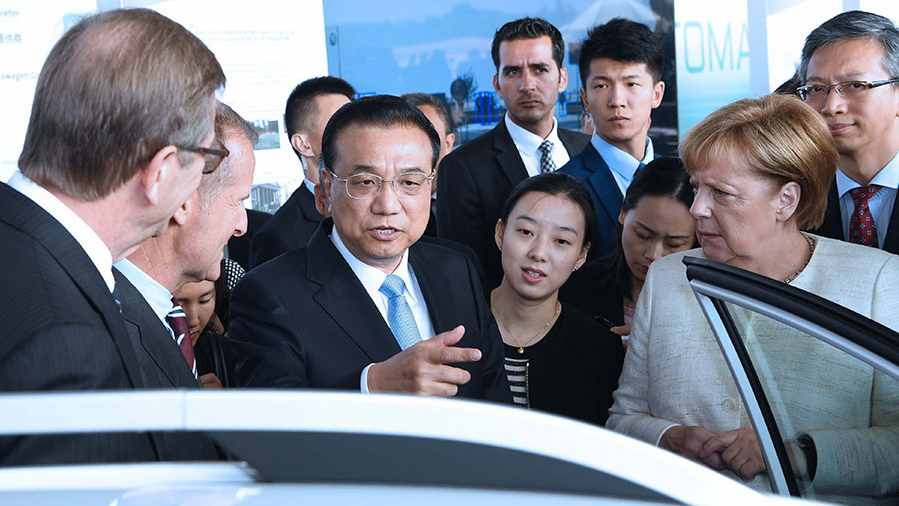Before Chinese Premier Li Keqiang departed Berlin for home on Tuesday, he and his German counterpart Angela Merkel took a special ride in a self-driving vehicle at an exhibition for cooperation between China and Germany in developing autopilot technology.