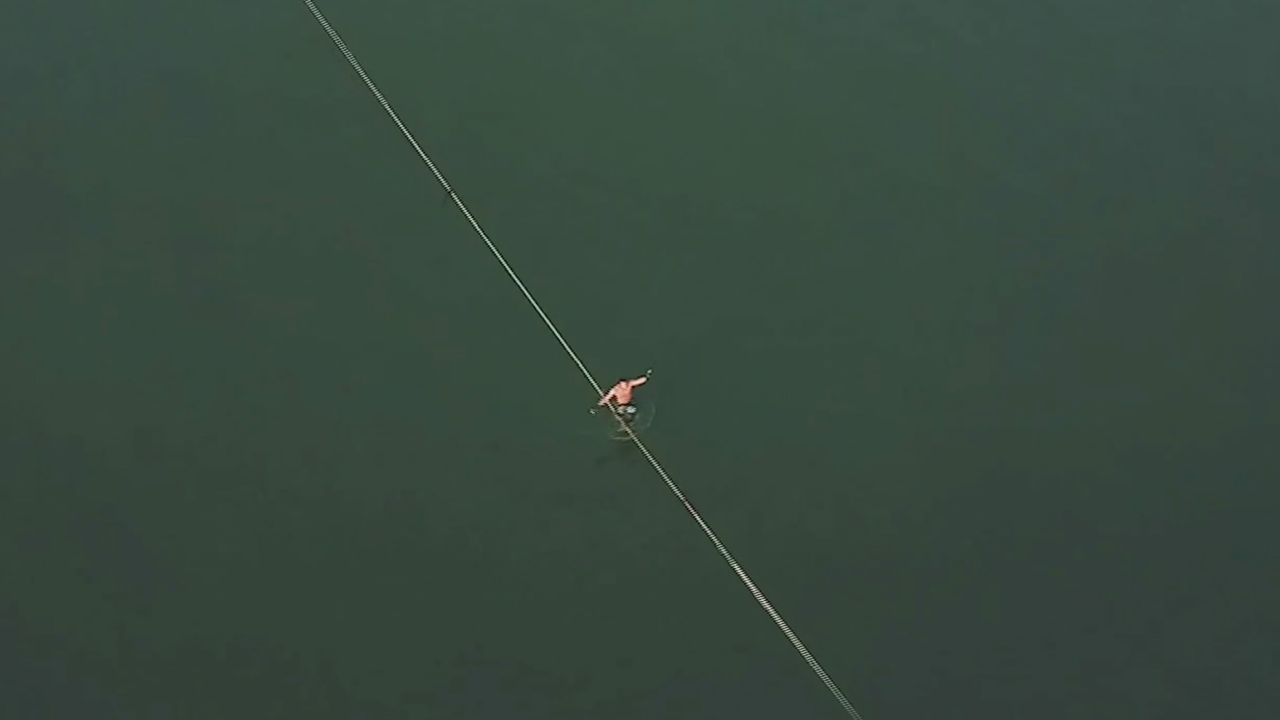 This recently released footage shows a daredevil scaling a 675 meters rope to set a waterline world record. The whole process was filmed by a drone, capturing the grand scenery of Wanfo Lake in eastern China. Adventurers Lucas Milliard, Anthony Newton and Pablo Signoret participated in the stunning achievement, along with some of the best slackliners in the world. The record attempt was set up by SDD Slackline, Slackline China and Huway Outdoor MATE for the International China Water Slackline Masters.