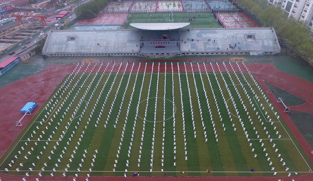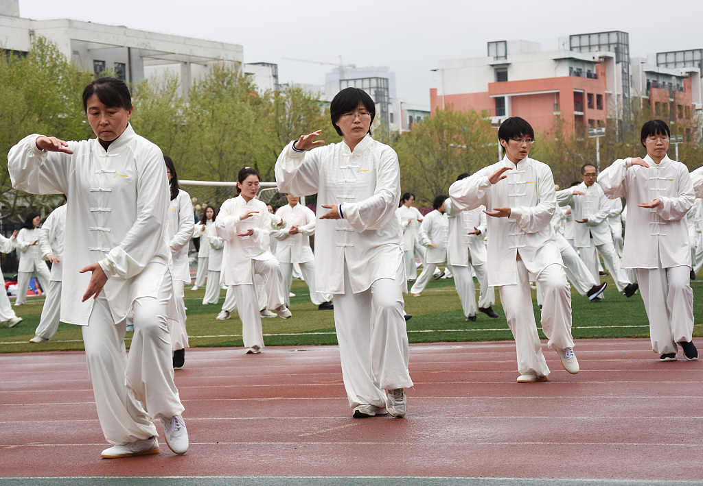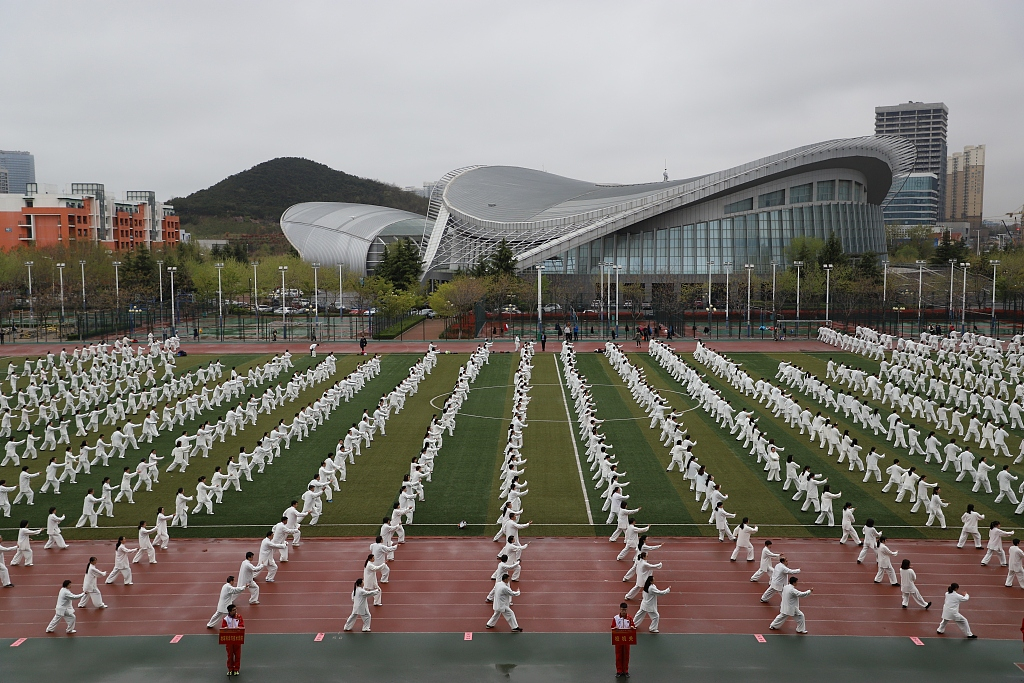 A grand Taiji boxing competition with over 1,200 participants was held in a university in east China's Shandong Province on April 28. /VCG Photo