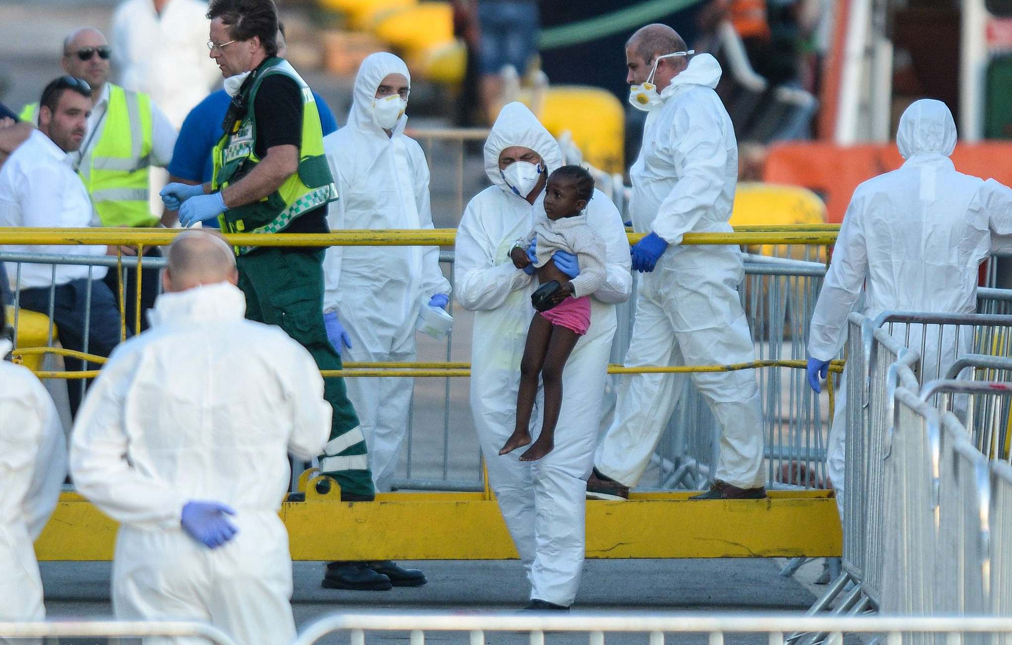 June 27, 2018: A migrant child gets assistance upon arriving aboard "Lifeline", a vessel for the German charity Mission Lifeline, in the harbor of Valletta, Malta. /VCG Photo