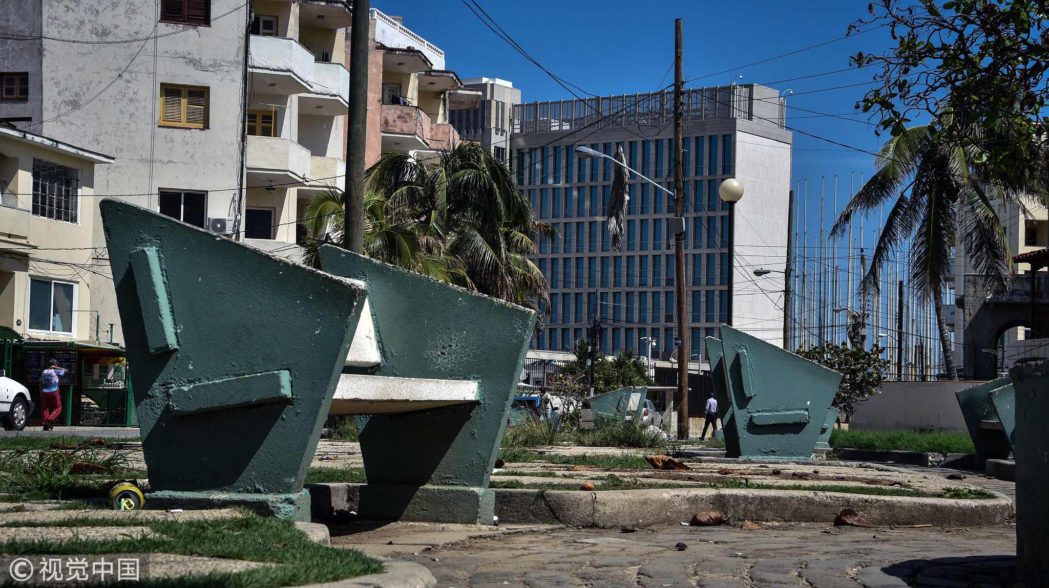 A park that used to be packed with Cubans queueing to apply for a visa at the US Embassy (back) remains empty, in Havana, October 26, 2017. /VCG Photo