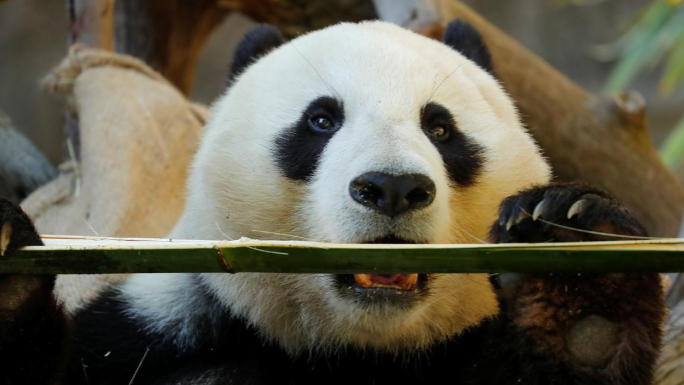 Giant male panda Xiao Liwu eats a meal of bamboo. /Reuters Photo