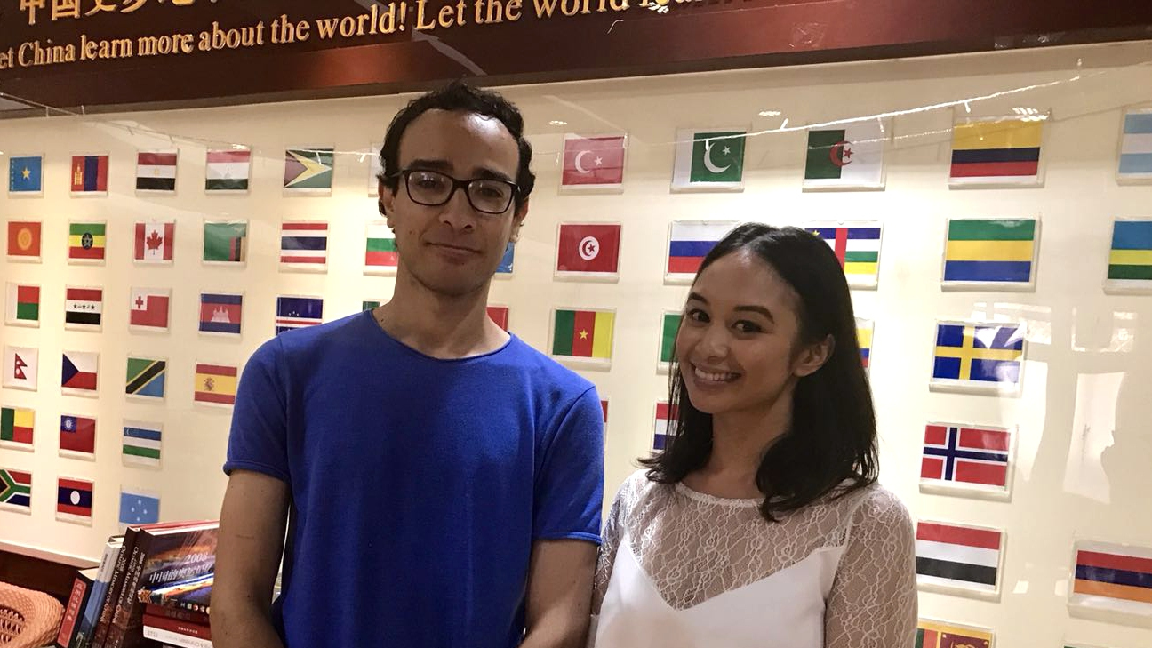 CGTN's Jenny Cortes Ybanez interviews Arab student Mohamed Afifi. /CGTN Photo
