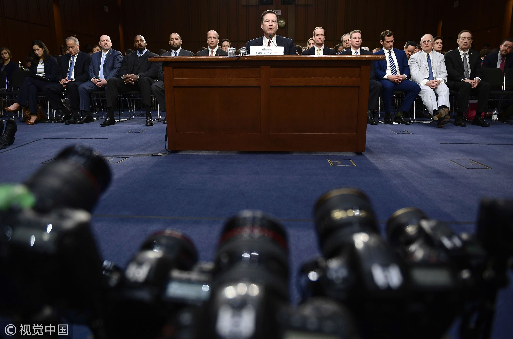 Former FBI Director James Comey testifies during a US Senate Select Committee on Intelligence hearing on Capitol Hill in Washington, DC, June 8, 2017. The fired FBI director took the stand in the crucial Senate hearing, repeating explosive allegations that President Donald Trump badgered him over the highly sensitive investigation into Russia's meddling in the 2016 election. /VCG Photo