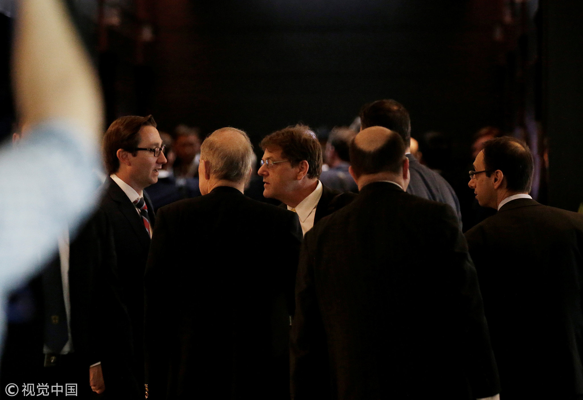 Members of a US delegation for trade talks with China arrive at a hotel in Beijing on May 3, 2018 /VCG Photo