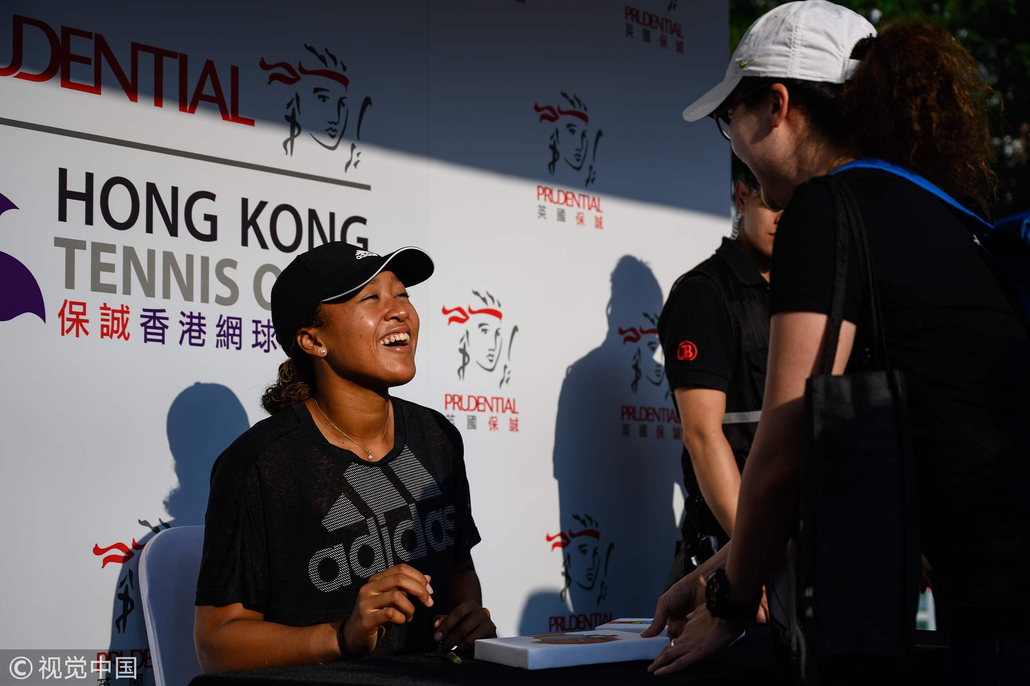 Naomi Osaka (L) of Japan meets fans and signs autographs at the Hong Kong Tennis Open on October 8, 2018. /VCG Photo