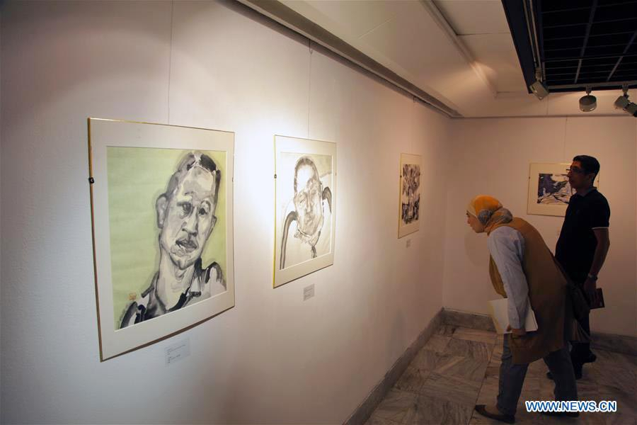 Egyptians visit the "Art without Borders" exhibition at the Gezira Art Center in Cairo, Egypt, Aug. 15, 2018. /Xinhua Photo
