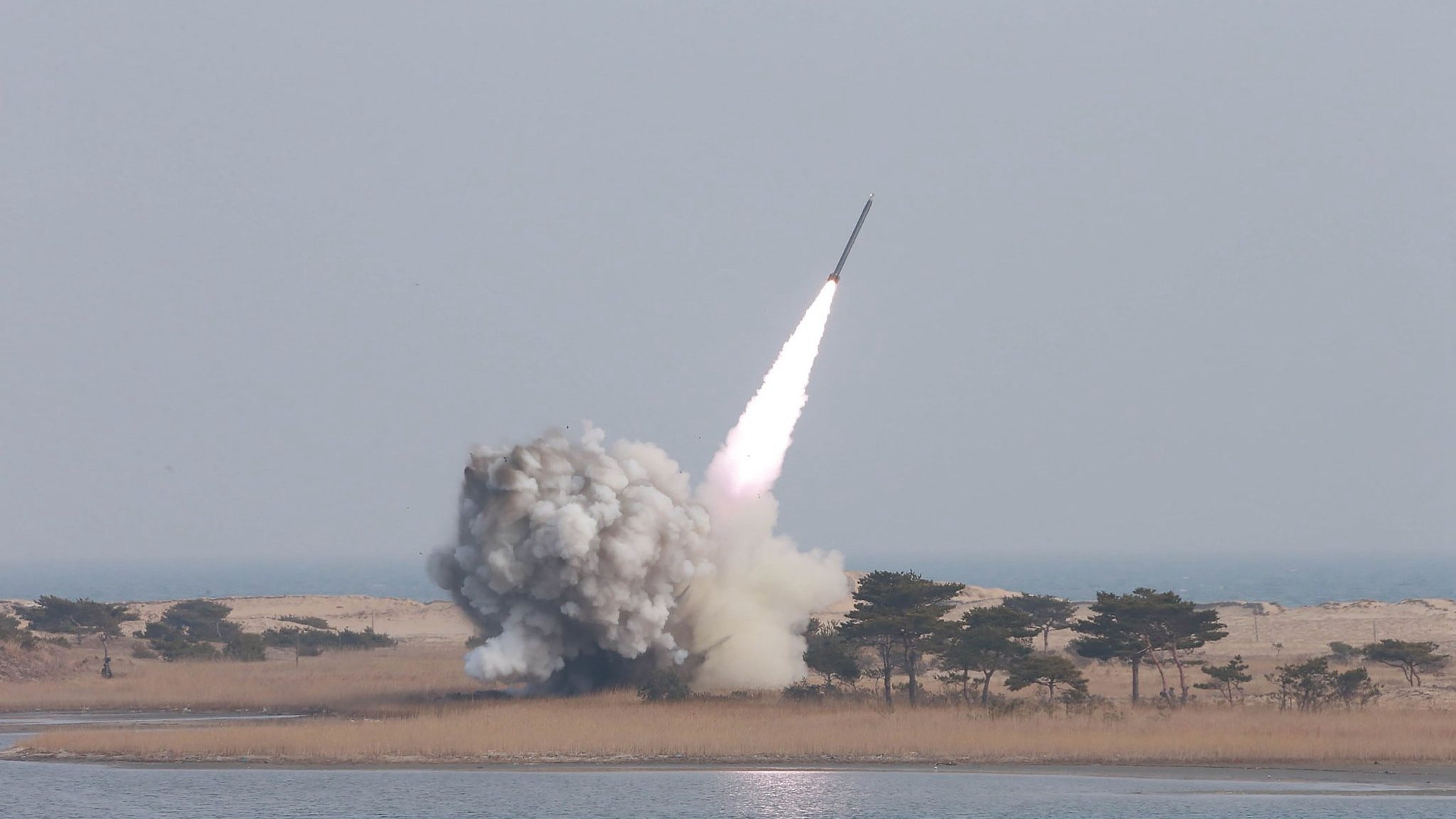 (Top image: This picture released from DPRK's official Korean Central News Agency (KCNA) on March 4, 2016, shows a test-fire of the new large-caliber rocket at an undisclosed location. /VCG Photo)