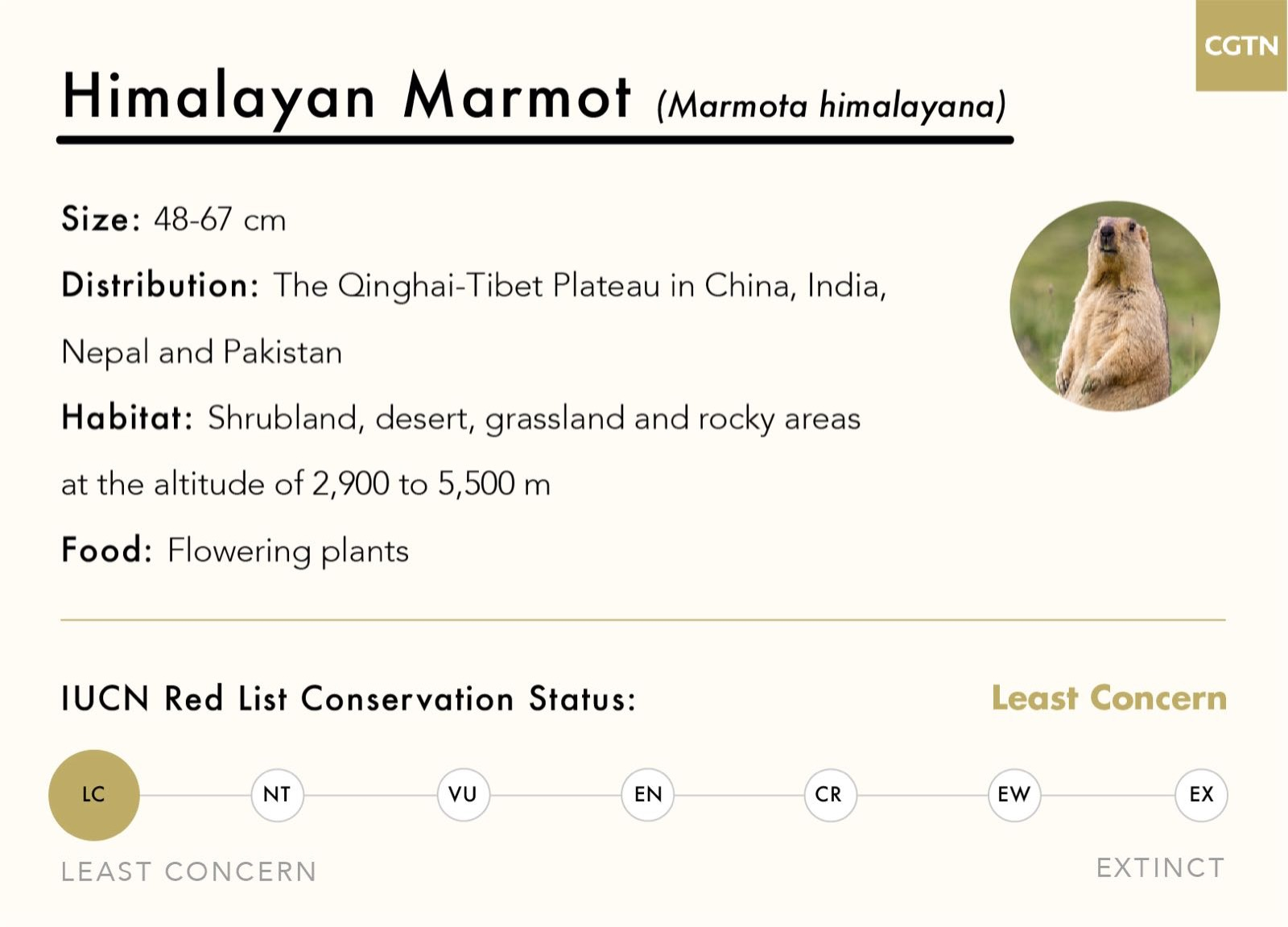The Himalayan marmot lives on the meadow steppe of the Qinghai-Tibet Plateau.
