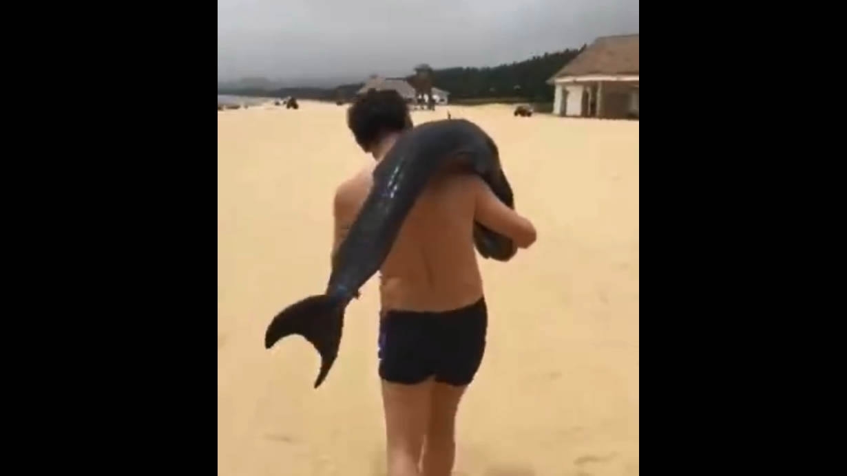Video footage of a man shouldering a dolphin-like creature on a beach has recently been circulating on China’s Twitter-like social media platform, Weibo. Local authorities said the man could face punishment.