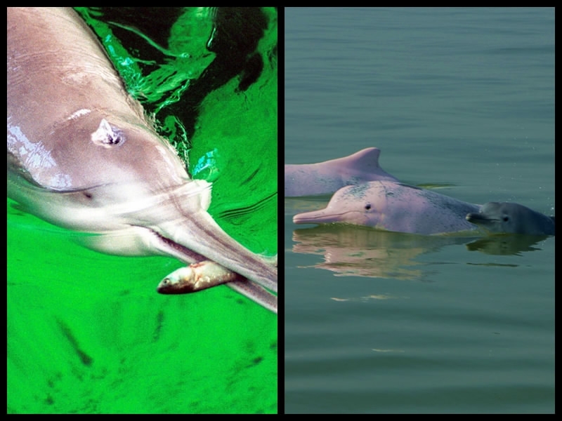 File photo shows the Chinese river dolphin (L) and Chinese white dolphins (R). /VCG Photo