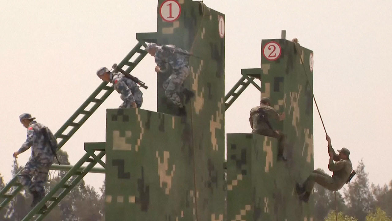 Thirteen marine corps teams from Iran, Russia, Sudan, Venezuela and China competed in an obstacle race in southeast China's Fujian Province on Monday, the second day of the 2018 International Army Games. Each participant has to finish all 19 obstacles, including running, climbing, jumping, crawling and balancing. After seven rounds of competition, the top three teams were all from China.