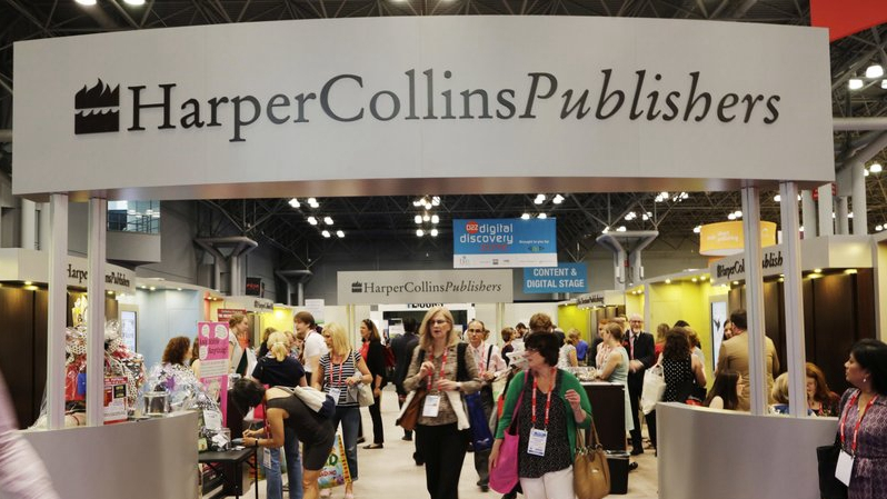 (Top image is a file photo via AP, shows attendees at BookExpo America visit the HarperCollins Publishers booth.)