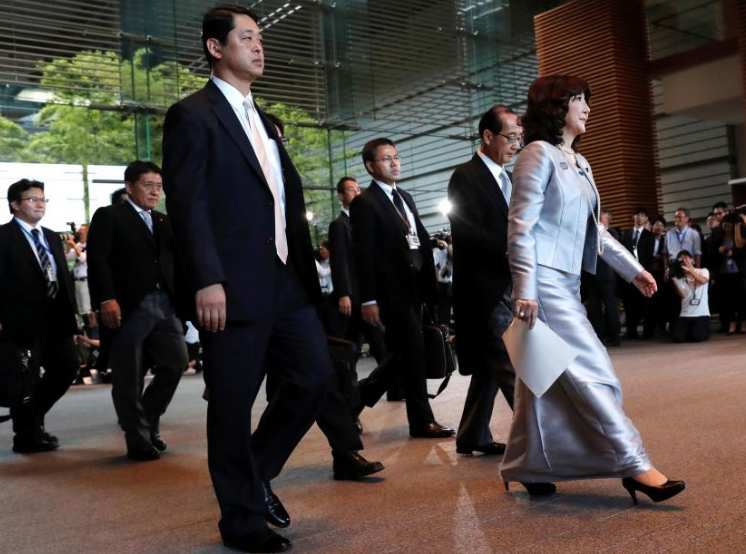 Japan's new minister in charge of local economic revitalization Satsuki Katayama wearing formal costume leaves Prime Minister Shinzo Abe's official residence with other ministers to attend an attestation ceremony at the Imperial Palace, in Tokyo, Japan, October 2, 2018. /Reuters Photo