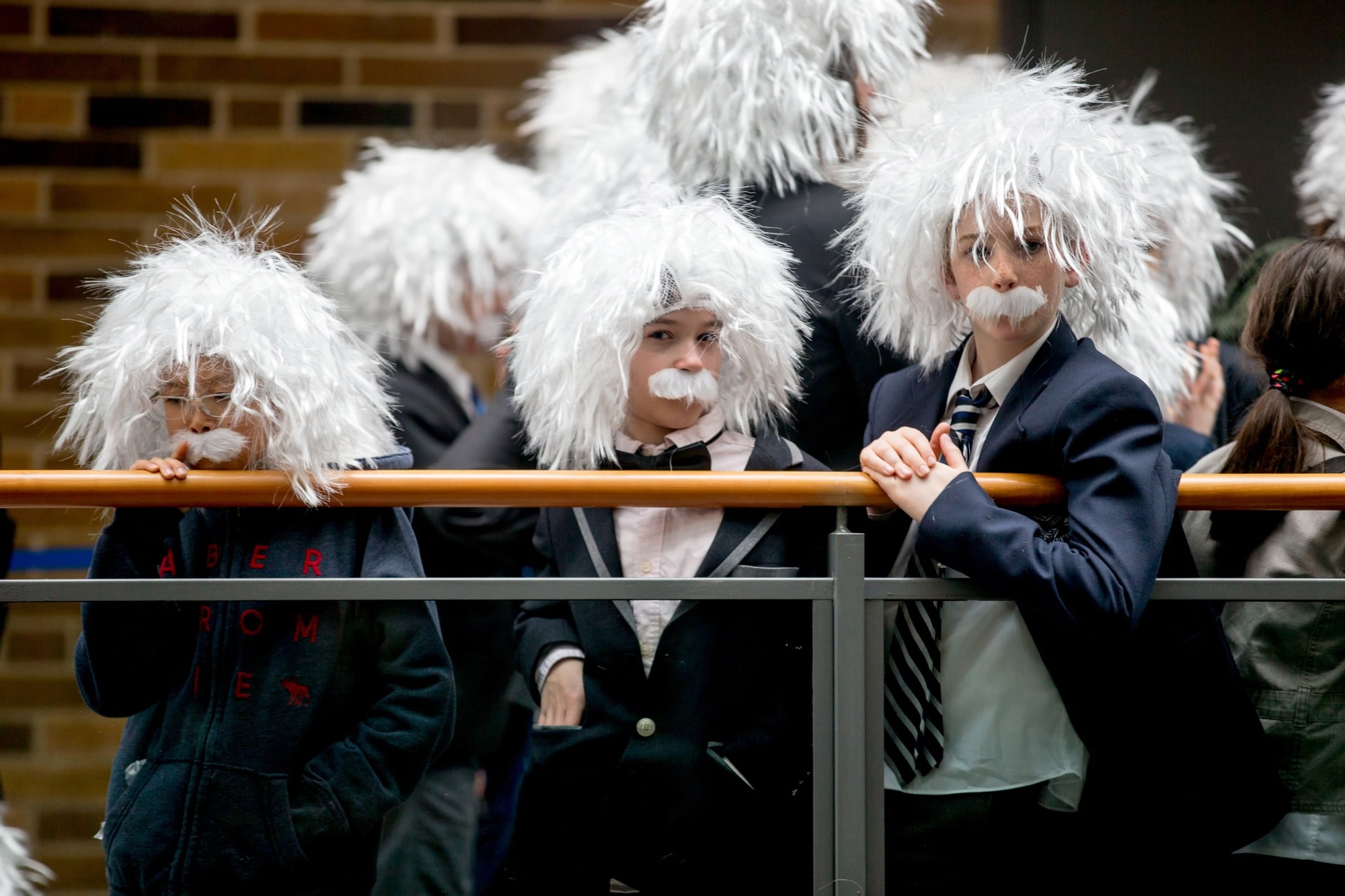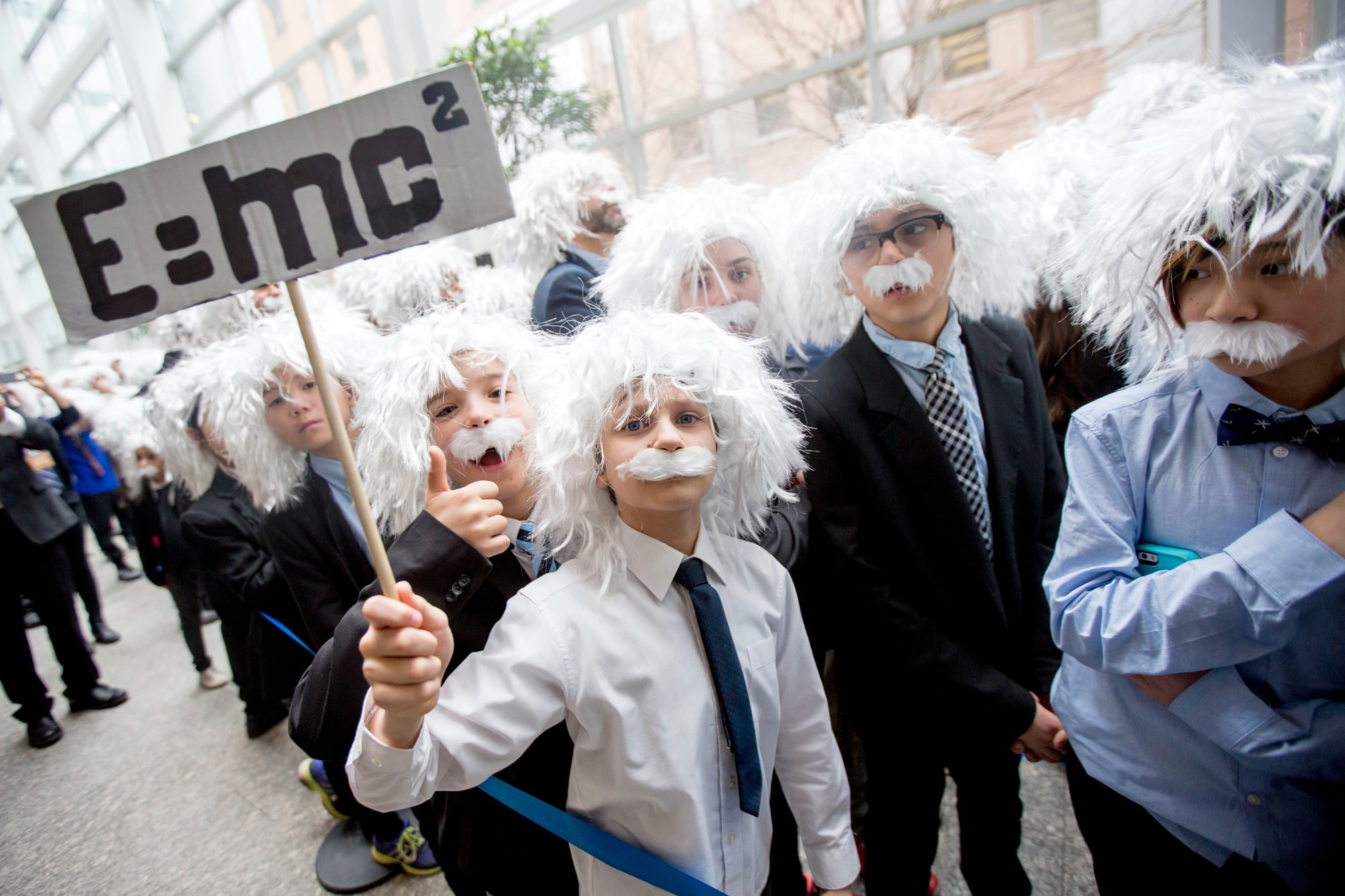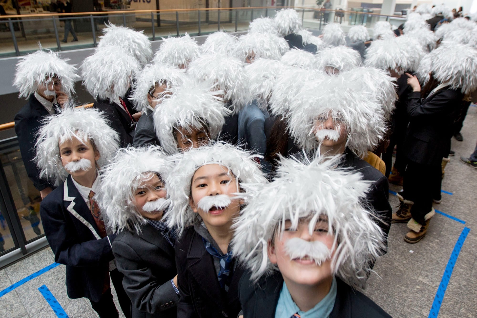 Many young admirers of the Nobel Prize-winning theoretical physicist probably have genius ideas of their own under those fake curly locks. /CFP Photo