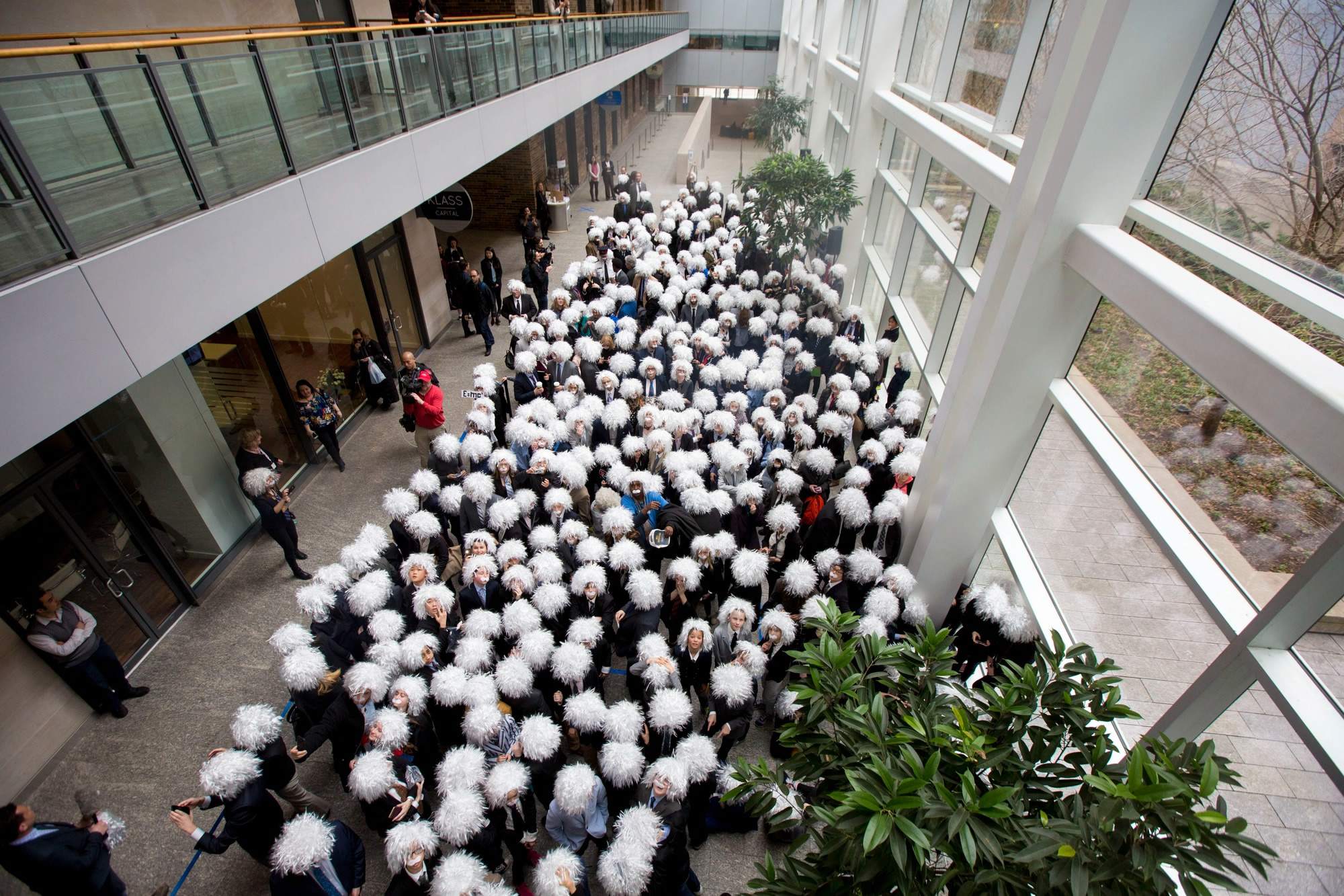 A Guinness World Record for the largest gathering of Albert Einstein lookalikes was set in Toronto on March 28. A total of 404 Einsteins got together, beating last year's record of 303. /CFP Photo