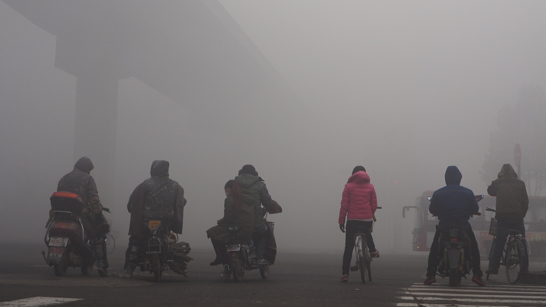 Heavy smog is seen in Shijiazhuang, Hebei province, Dec 10, 2015.