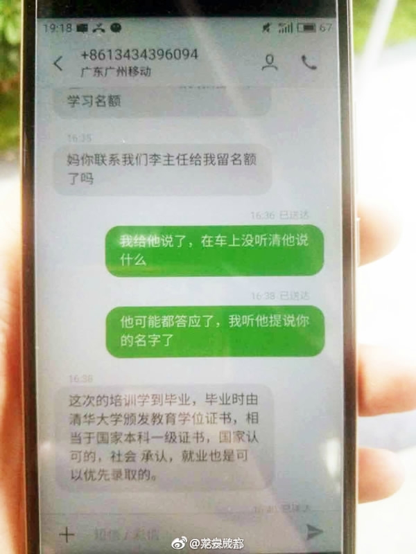 Meng's message exchanges with her "daughter." / Photo via Weibo @PinganChengdu