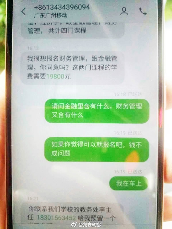 On Tuesday afternoon, Mrs. Meng, an anxious mom aged around 40 from southwest China’s Chengdu, Sichuan Province turned to policeman She Hongning to look for her daughter, who was studying at college. Meng said she received a message from her daughter, claiming that her phone was lost and that she needed to talk to Meng about a top institution’s training session. The message, supposedly from a friend’s phone, included a request for Meng to transfer 19,800 yuan (2,900 US dollars) to “academic director Li” for registration.