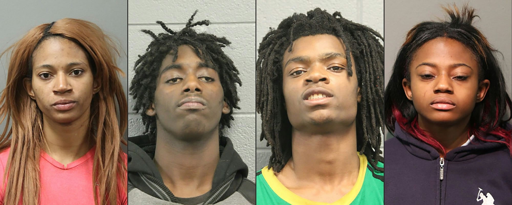 This photo shows the mugshots released in January by the Chicago Police Department of assault suspects (L-R) Tanishia Covington, Jordan Hill, Tesfaye Cooper, and Brittany Covington. /VCG Photo