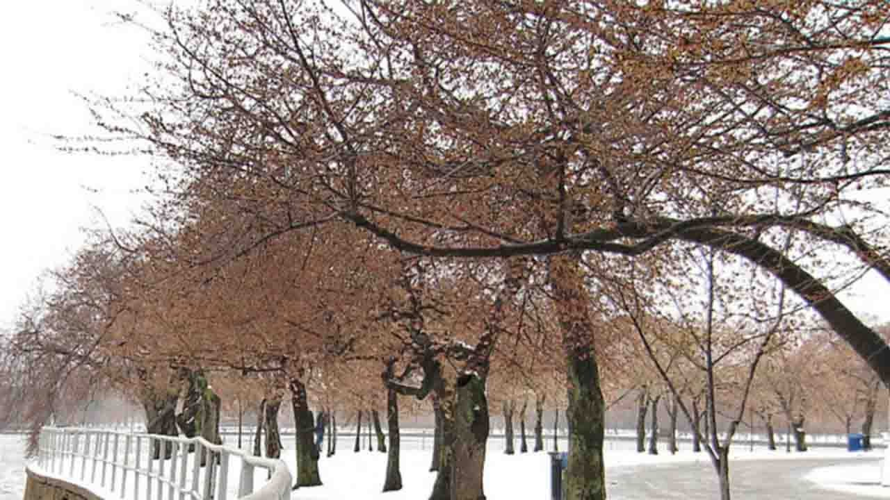 As a huge snow storm barreled up the east coast of the United States, in Washington DC, it was the world famous Japanese cherry blossoms that took a hit.