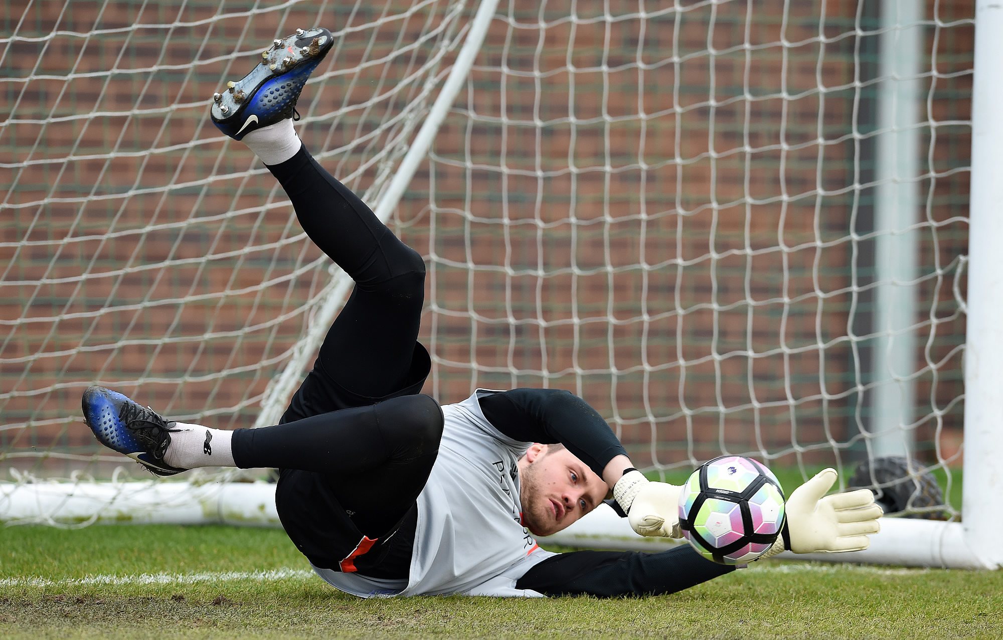 Simon Mignolet during a training session at Melwood Training Ground on March 10, 2017 in Liverpool, England. /CFP Photo