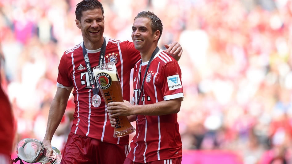 Bayern bids adieu to Lahm, Alonso in beer-filled celebration. /VCG Photo