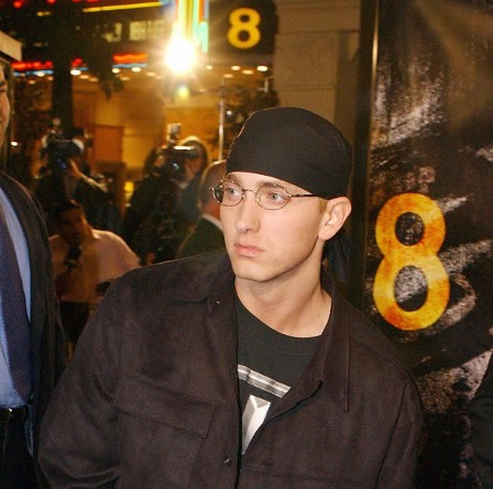 Rap singer Eminem walks past photographers at the premiere of his film "8 Mile," on November 6, 2002, in Westwood, Los Angeles. / AP Photo