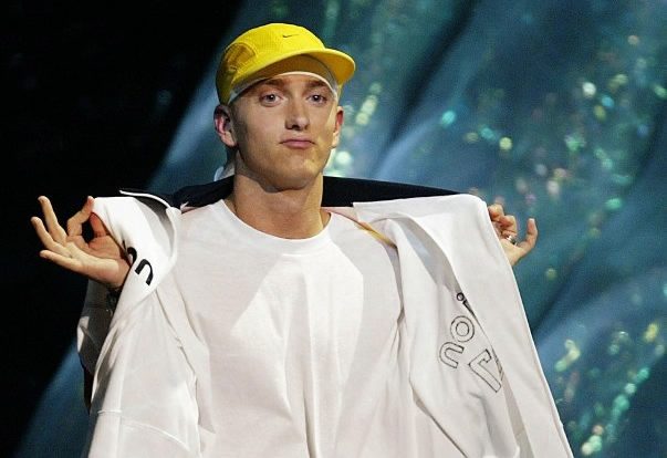 Eminem walking on stage to accept the Video of the Year Award at the MTV Video Music Awards in New York, August 29, 2002. / AFP Photo