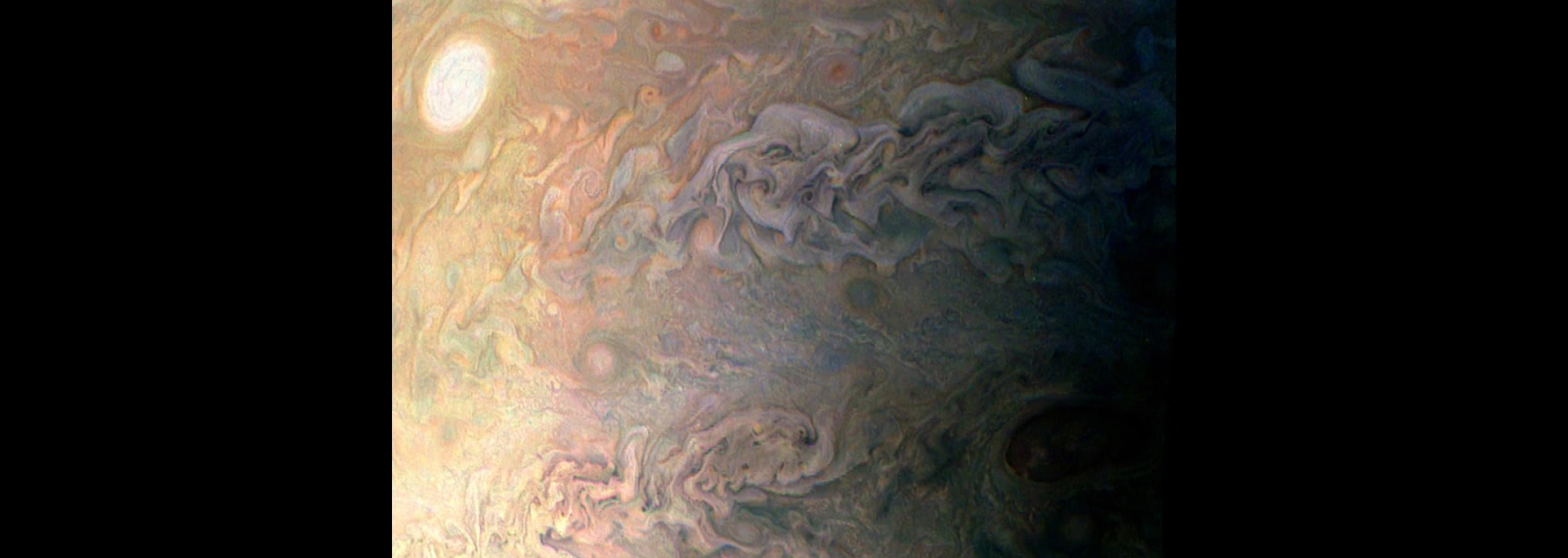 The photo of Jupiter’s southern polar highlights oval storm clouds over the planet. /CFP
