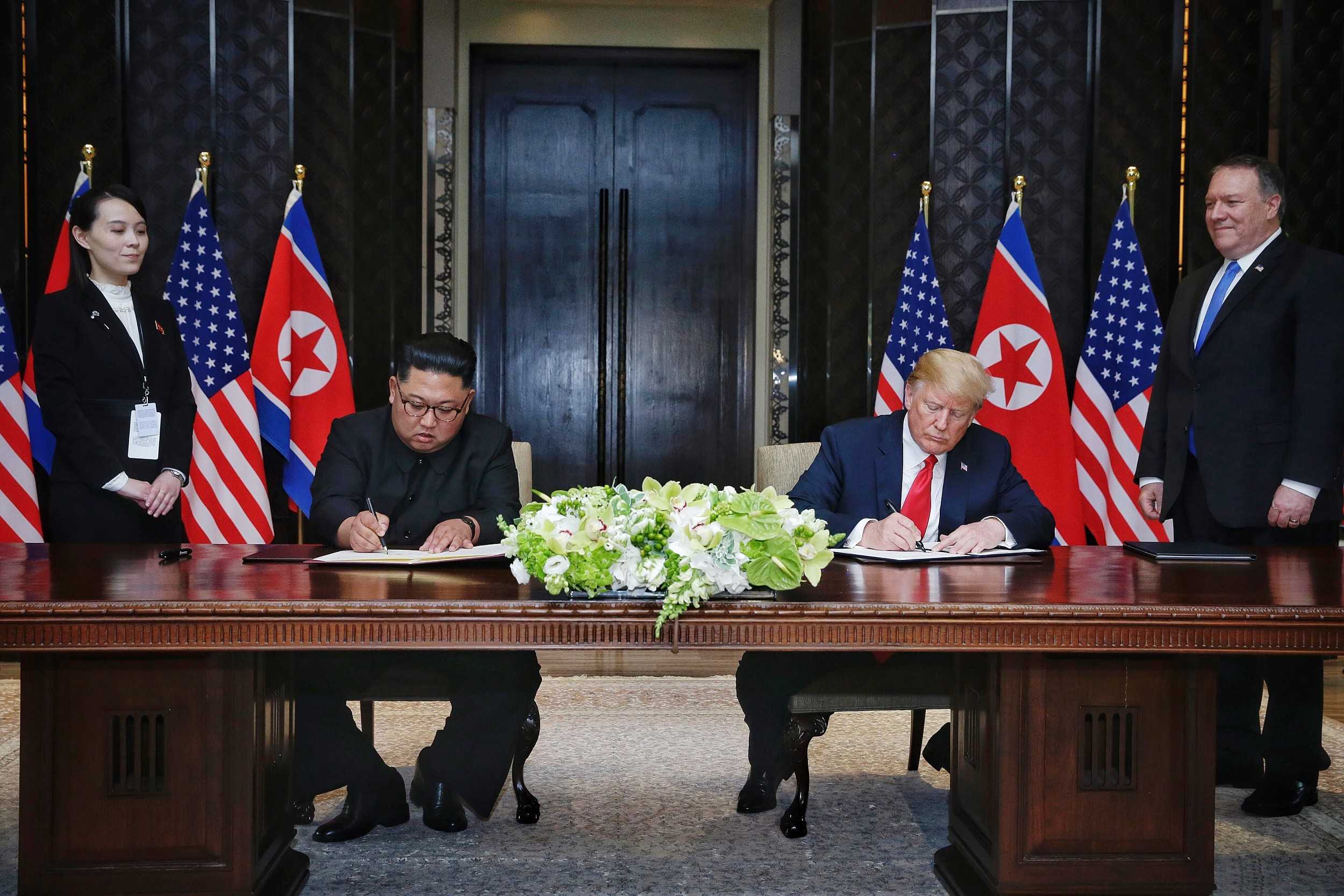 During the historic meeting that could open a new chapter on the Korean Peninsula, the DPRK leader Kim Jong Un and US President Donald Trump signed a joint statement, in which Trump committed to providing security guarantees and Kim reaffirmed his firm and unwavering commitment to complete denuclearization of the Korean Peninsula.
