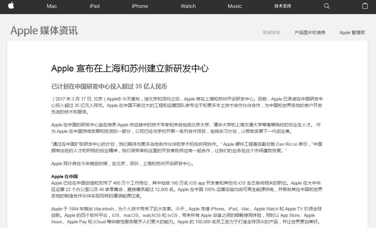 Apple's announcement, on Friday which is only available on its China webiste, in Chinese. / Apple