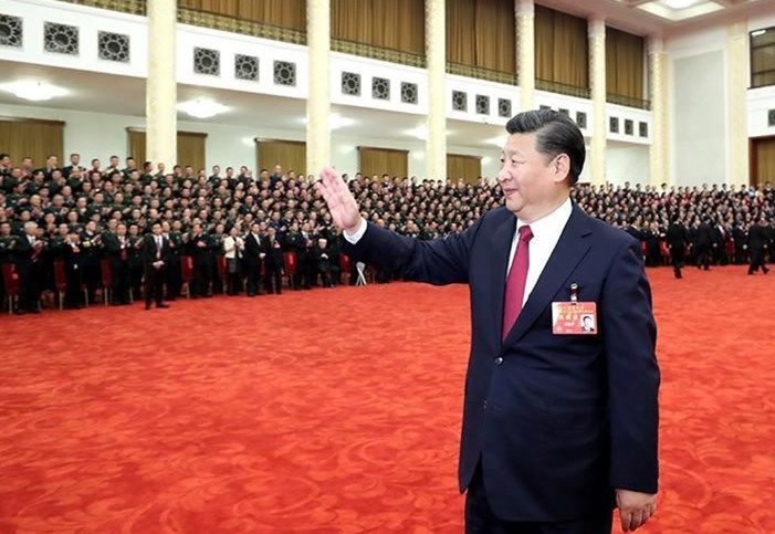 General Secretary Xi Jinping waving at representatives of the 19th CPC National Congress