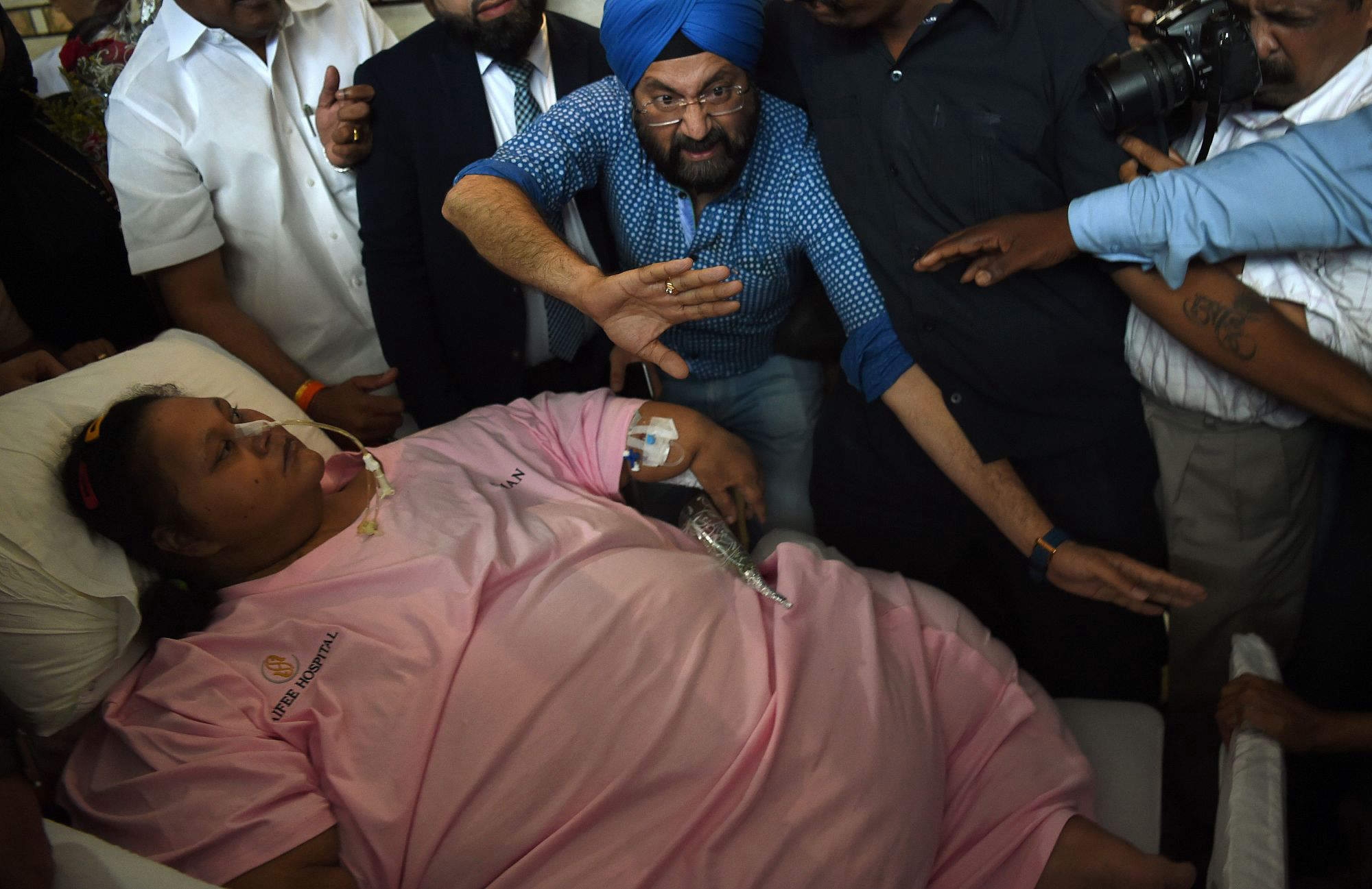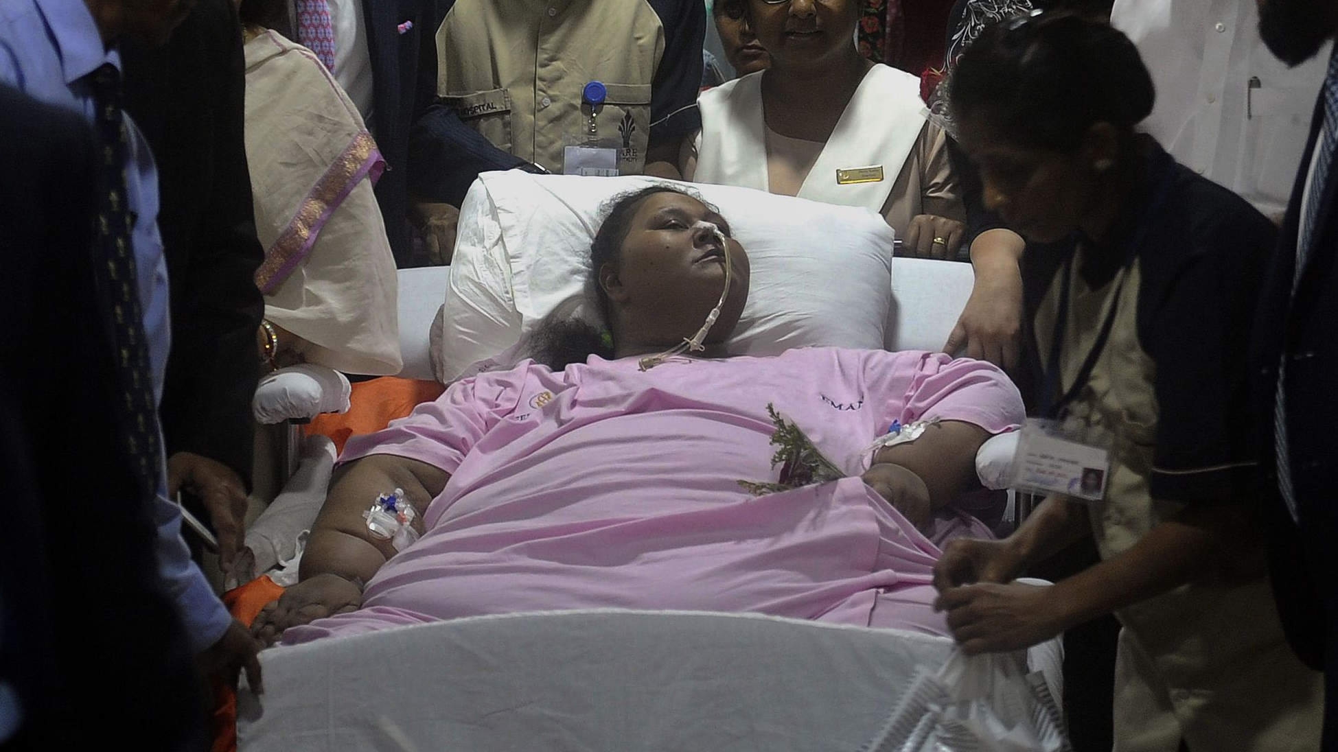Abd El Aty had not left her home in Egypt's Mediterranean port city of Alexandria for two decades until her arrival in India. Her family told doctors that she was diagnosed as a child with elephantiasis, leaving her almost immobile. Abd El Aty has suffered a stroke and faced a series of other serious ailments owing to her weight including diabetes, high blood pressure, hypertension and sleep deprivation. She is unable to speak properly and is partially paralyzed.