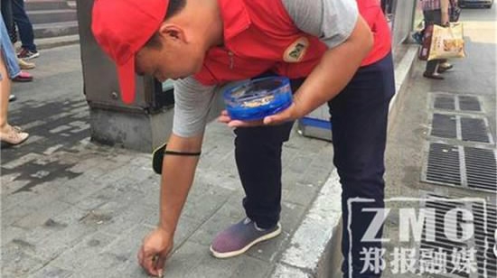 Tuesday: A volunteer picks up cigarette butts at a bus station. /Zhengzhou Evening Newspaper photo