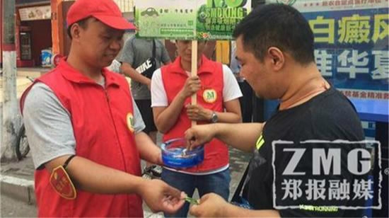 Tuesday: A volunteer gives passenger a gum to help stop smoking. /Zhengzhou Evening Newspaper photo