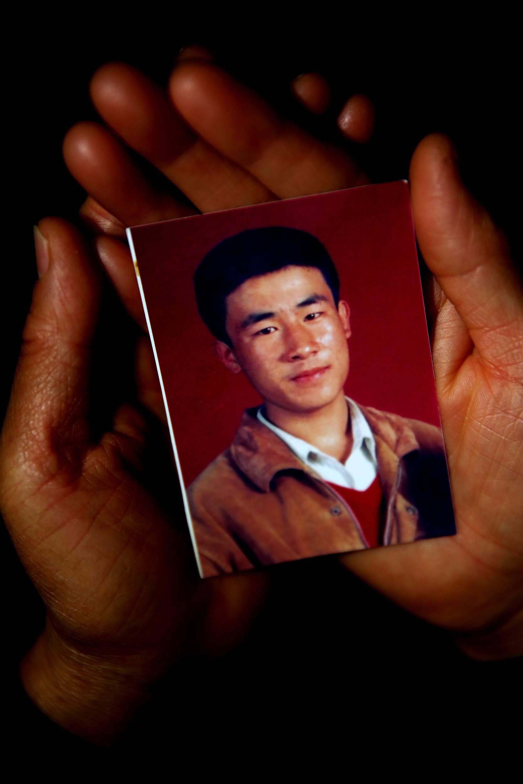 Huugjilt's mother holds a picture of her son. /VCG Photo