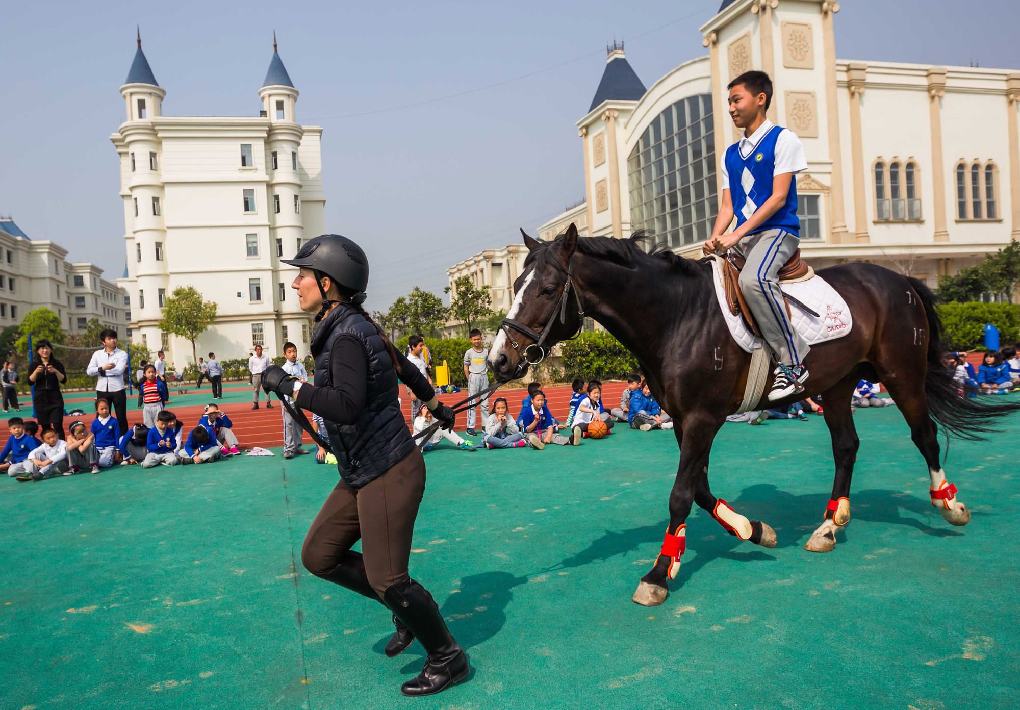 Students take equestrianism courses in China's eastern province of Zhejiang. /CFP Photo