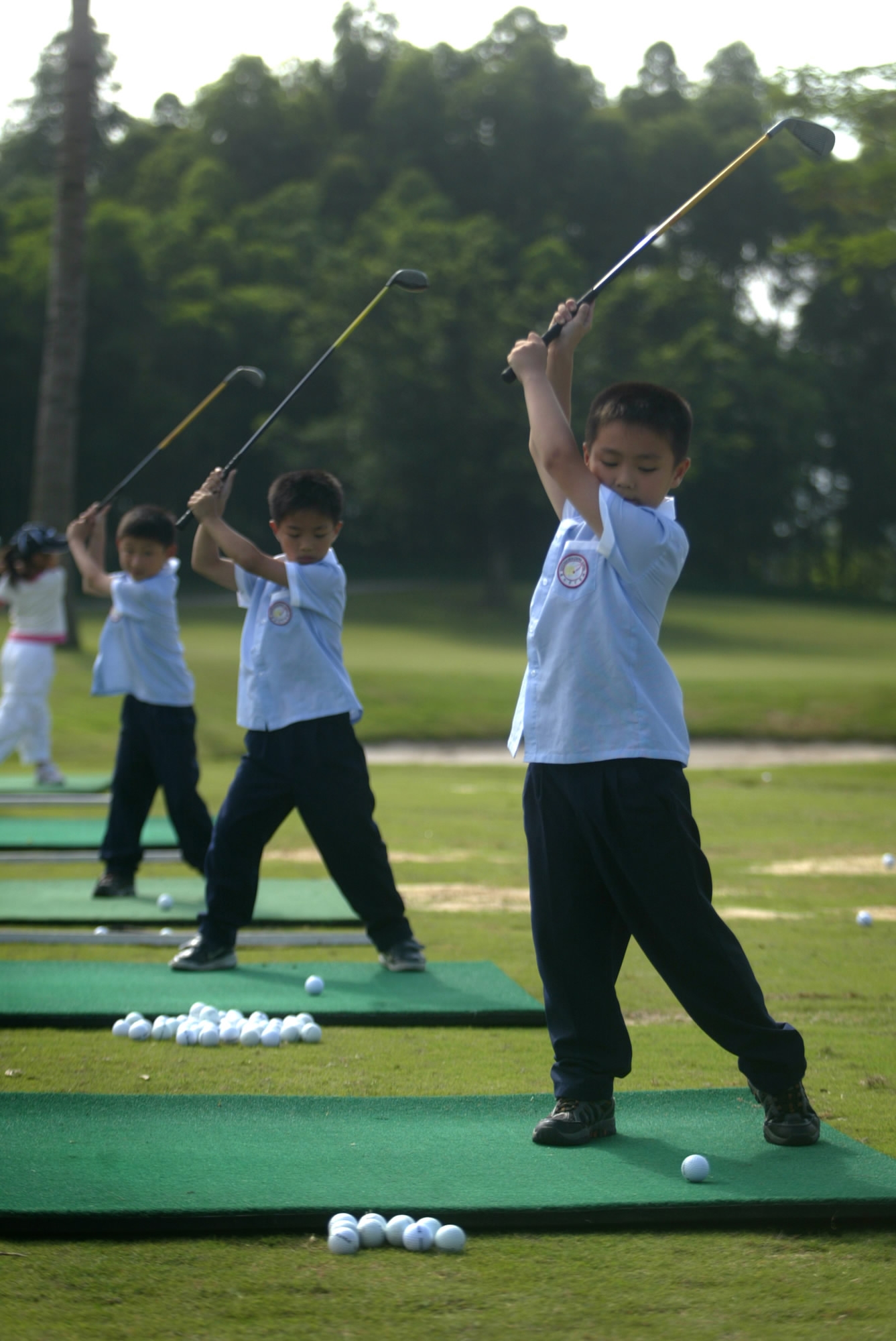 Students at a private school in Huizhou, Guangdong Province take golf lessons once a week. / CFP Photo