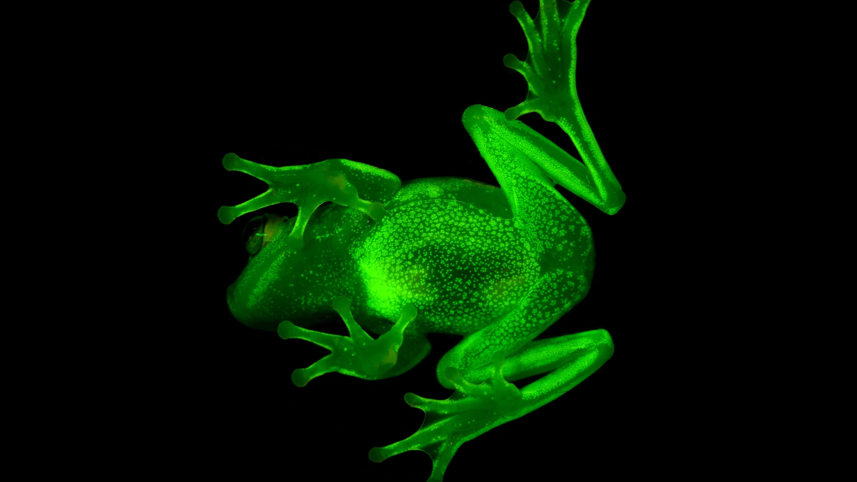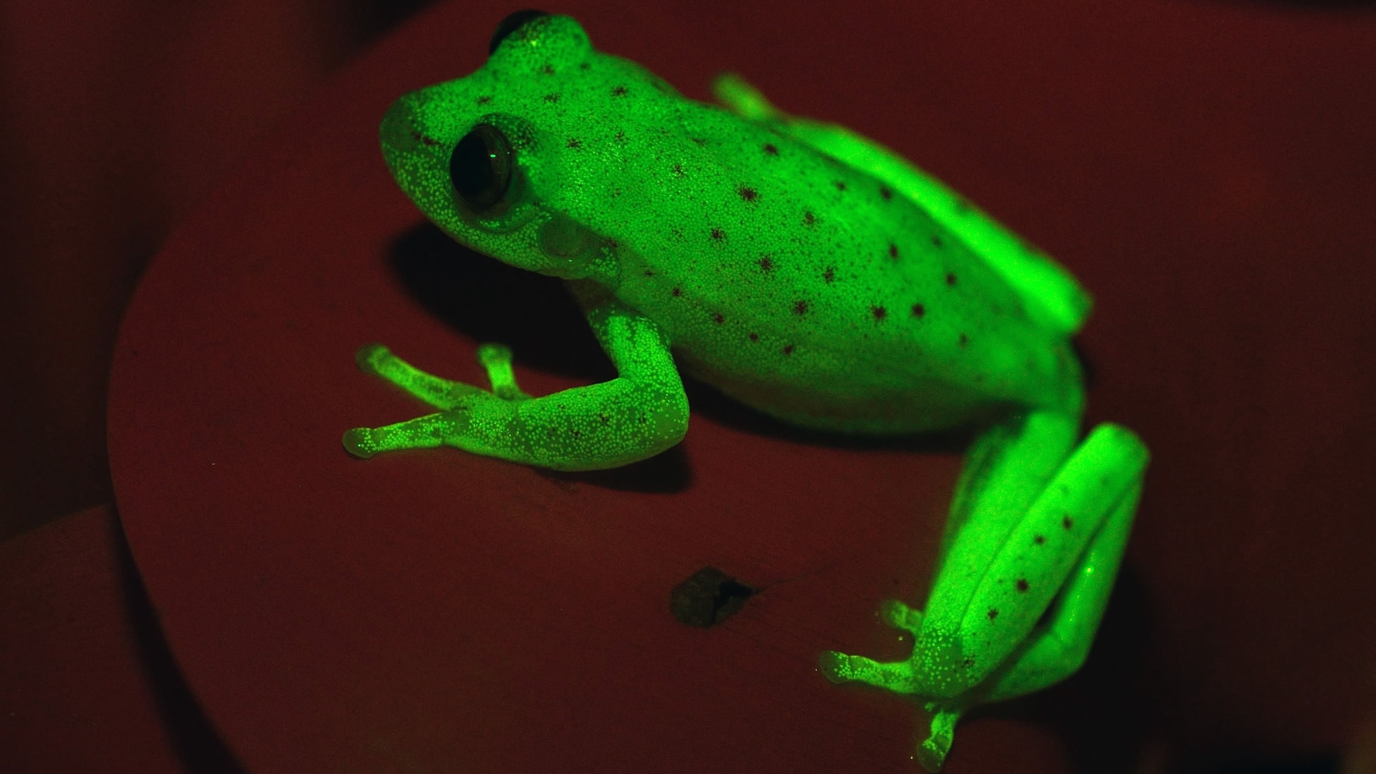 A series of photos of a fluorescent frog was released by researchers Carlos Taboada and Julian Faivovich from the Argentina Museum of Natural Sciences in Buenos Aires on Thursday. /VCG Photo
