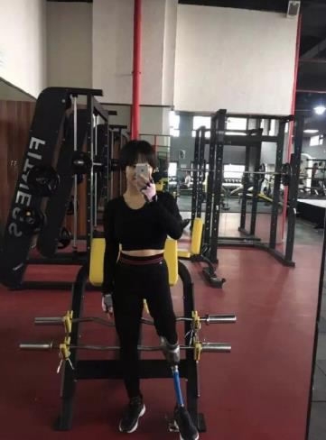 Xie Renci poses in a photo showing her exposed artificial limb. /Zhihu Photo