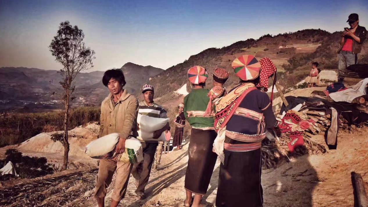 Myanmar civilians receive donations by local volunteers, at Zhenkang County, southwest China's Yunnan Province. /Photo by volunteers