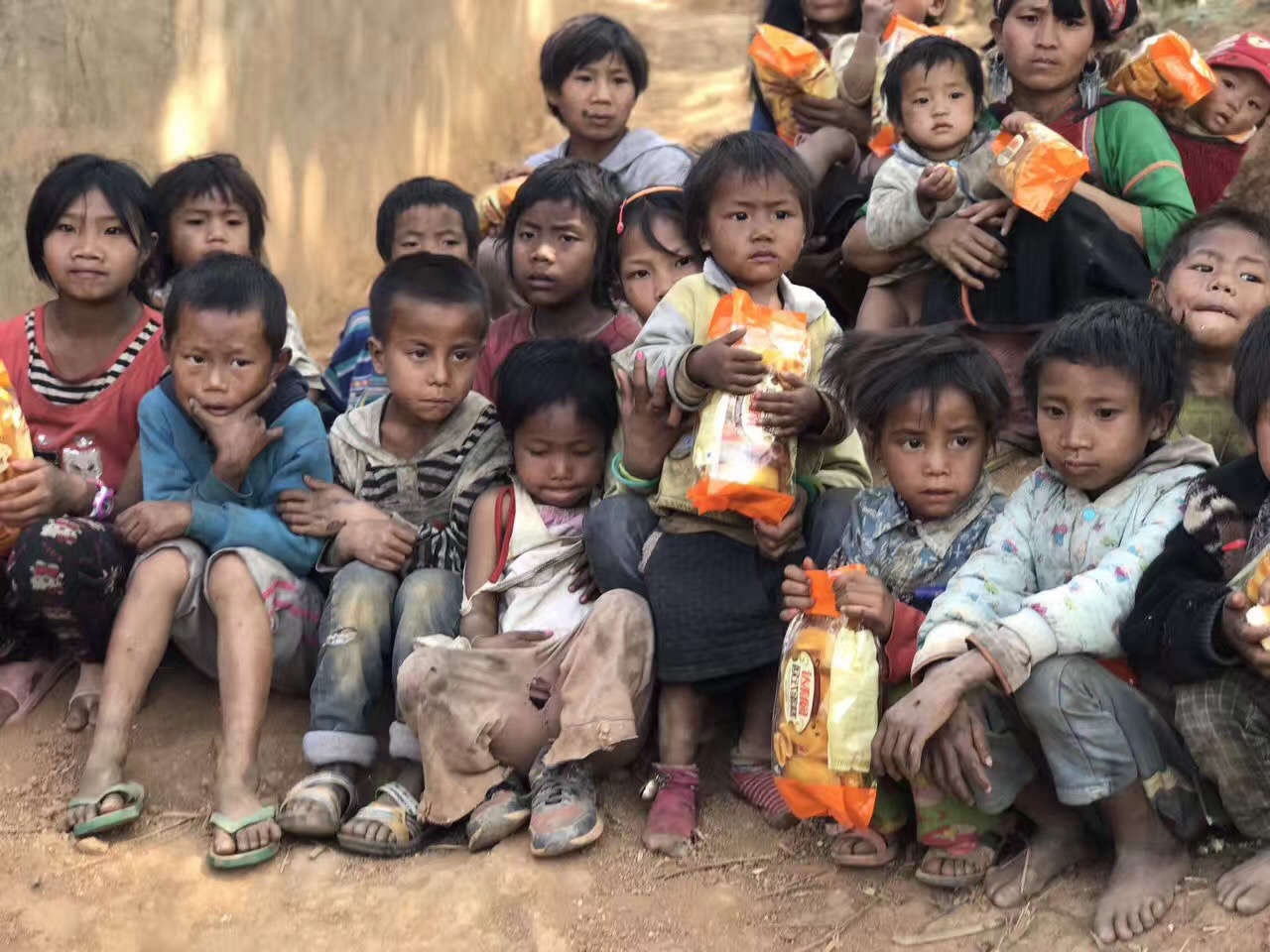 It’s common for Myanmar families in the Kokang region to have multiple children. These children are part of eight families. /Photo by volunteers
