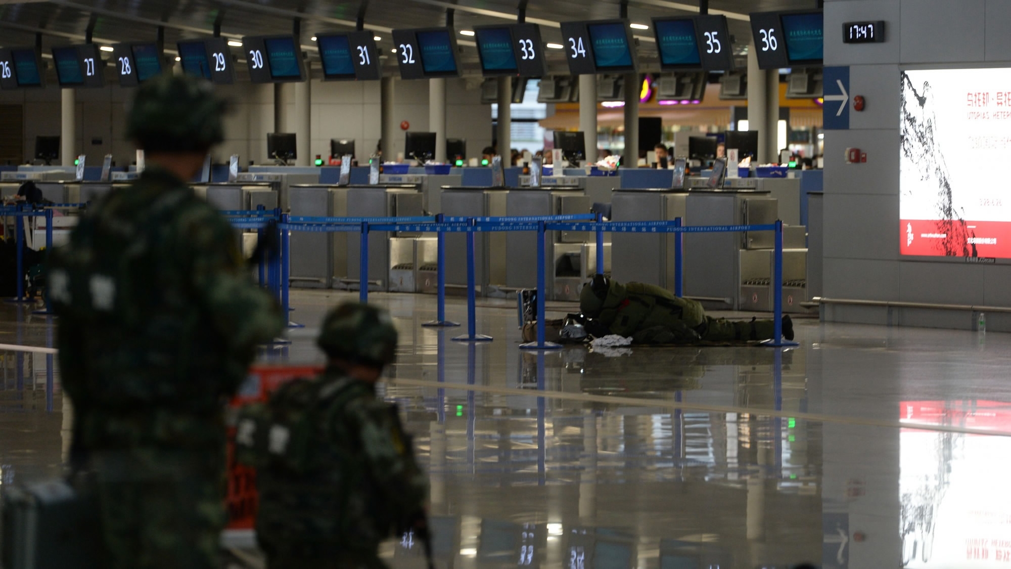 Police arrive at Shanghai Pudong International Airport where a blast was reported on June 12, 2016. /CFP Photo