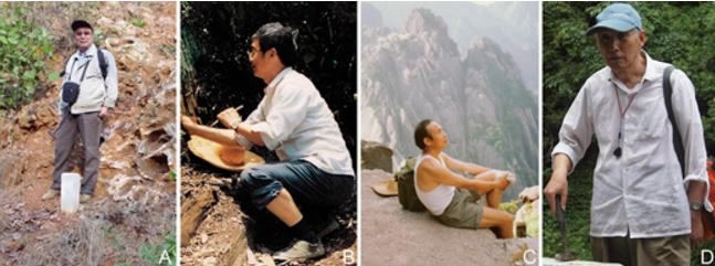 A screen grab from the National Science Review website introducing the Chinese paleontologists who pioneered the study of the Weng'an biota: (A) Shixing Zhu, (B) Meng'e Chen, (C) Yun Zhang, (D) Yaosong Xue.