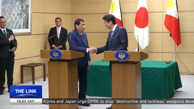 Japan's Prime Minister Shinzo Abe welcomed Philippine President Rodrigo Duterte to Tokyo to discuss strengthening ties. The two leaders announced upcoming infrastructure projects and addressed tensions on the Korean Peninsula. CGTN's correspondent Terrence Terashima has more.